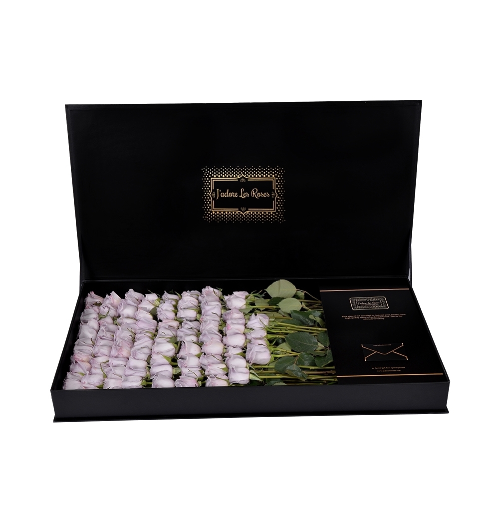 Mix (Purple & Cream) Roses in Black Small Square Box