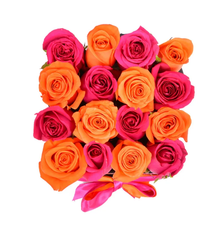Mix (Orange & Fuchsia) Roses in Black Small Square Box