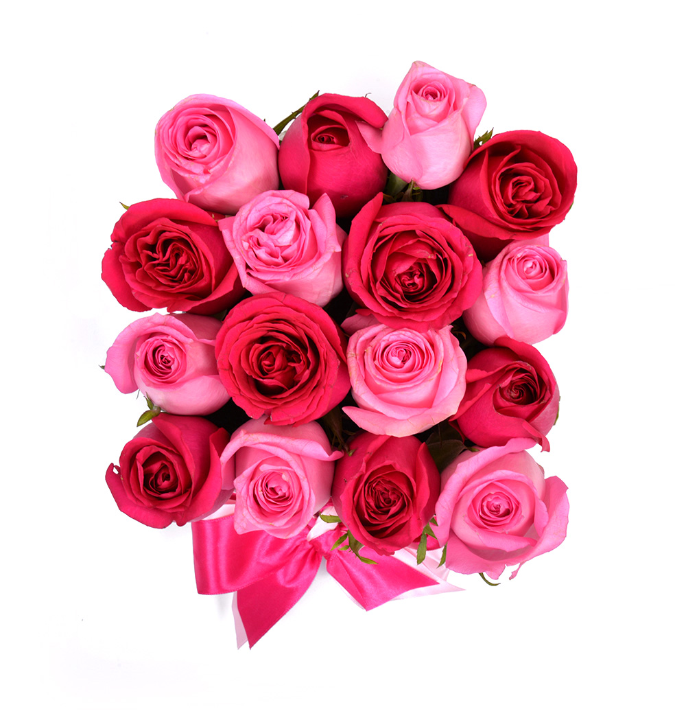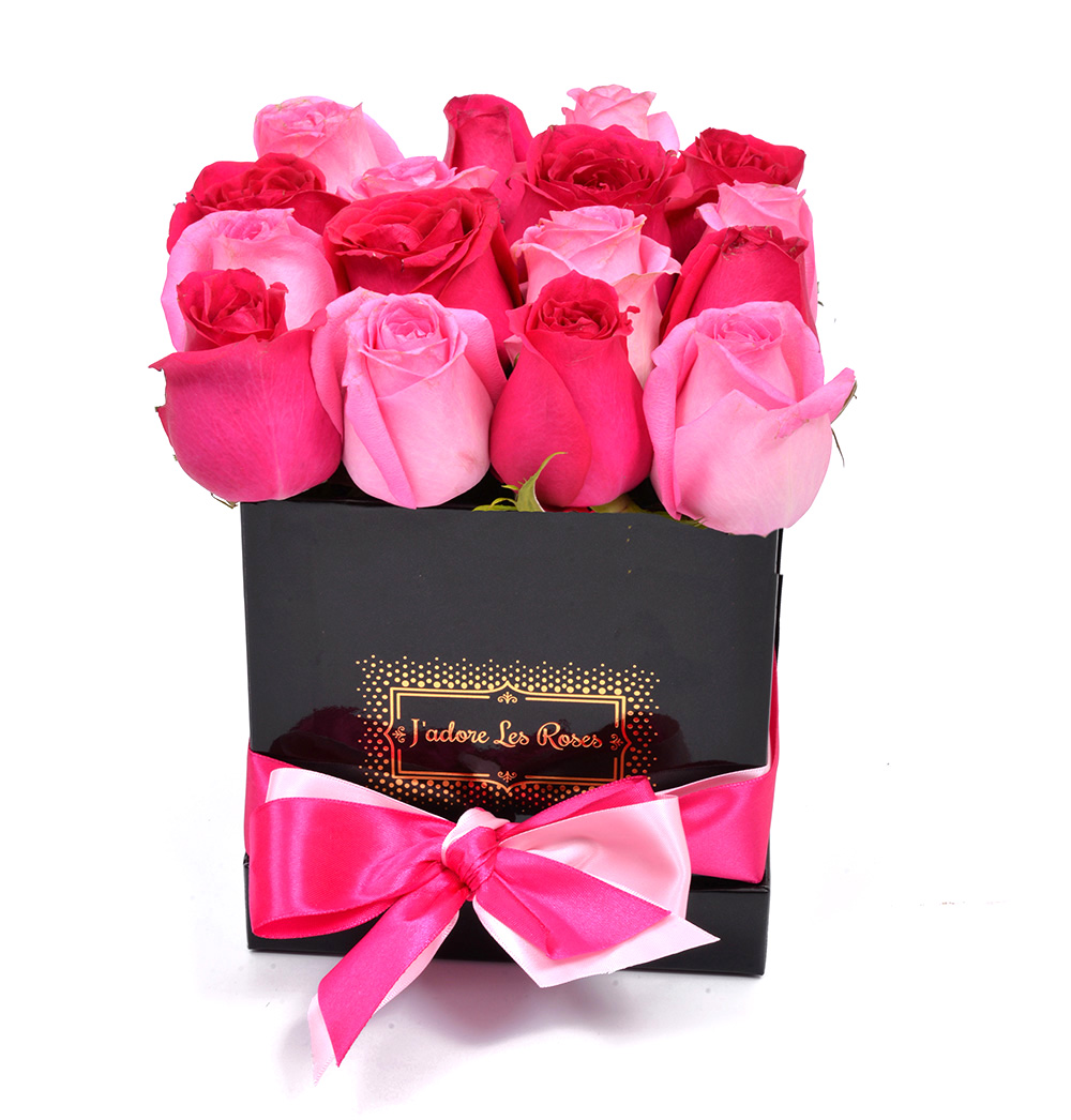 Mix (Pink & Fuchsia) Roses in Black Small Square Box