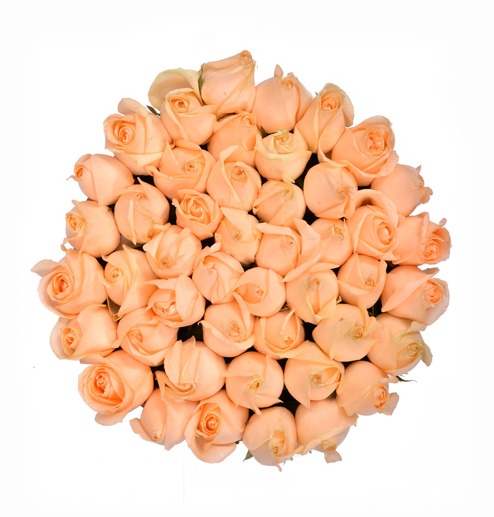 340 Peach Roses in Bronze Round Box 40-50 Dia 28 x 20 495