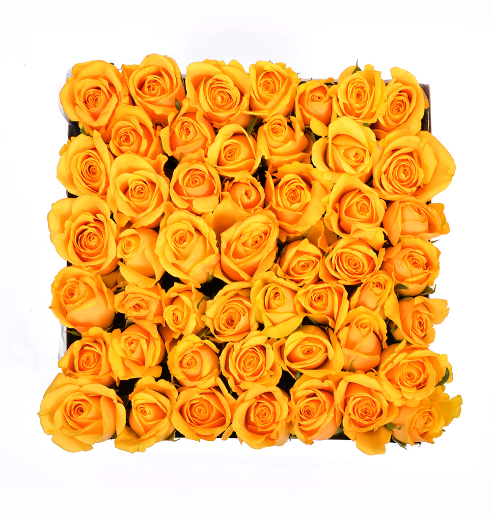 217 Yellow Roses in White Medium Square Box 36-49 25X25X20 495